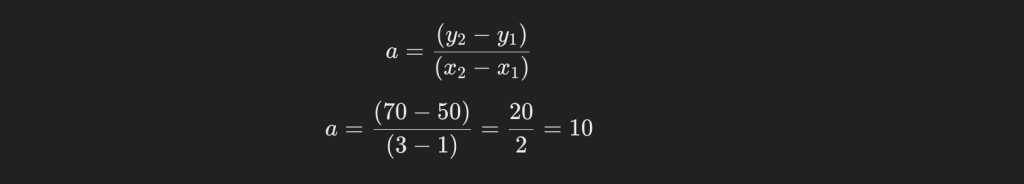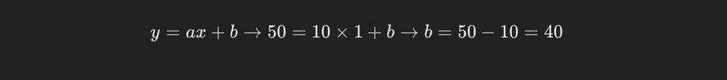 この手の問題の解き方として、y = ax + bと式を置いて、異なる2ポイントの結果をxとyに代入し、aとbを求めるやり方が最も簡単でしょう。