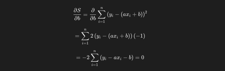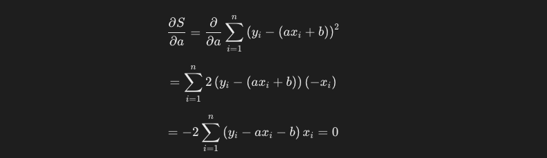 この計算を、残差平方和の式に対しても行います。まずはaに関して偏微分をした計算結果は以下のようになります。