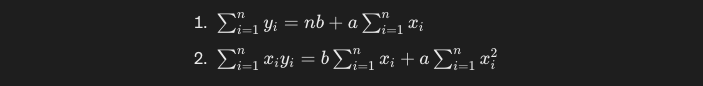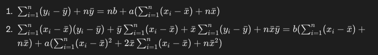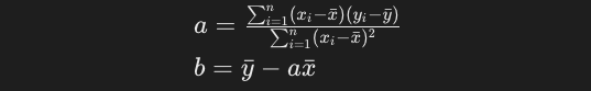 最終的に両辺を約分すると、以下の式が求められます。yとxの各データポイントさえ分かっていれば、簡単な計算で回帰係数a及びbを求めることができ回帰直線も定めることができるようになりました。