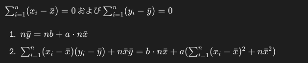 なお、aの分母をn(またはn-1)で割るとxの分散に、aの分子をn(またはn-1)で割るとxとyの共分散になります。