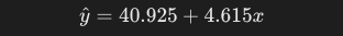 よって、y = 4.615x + 40.925という回帰直線が得られました。図にしてみると以下です。