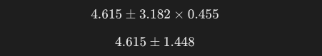 今回は自由度3のt分布表に従い、t値を3.182と置いて、以下の一般式に当てはめます。
