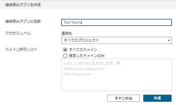 Tableau管理者がユーザーに権限を付与することで使用可能になるオプションです。つまり、通常のユーザーはTeamsと連携されたTableau Cloudアプリをすぐには使えず、管理者からの許可が必要になります。