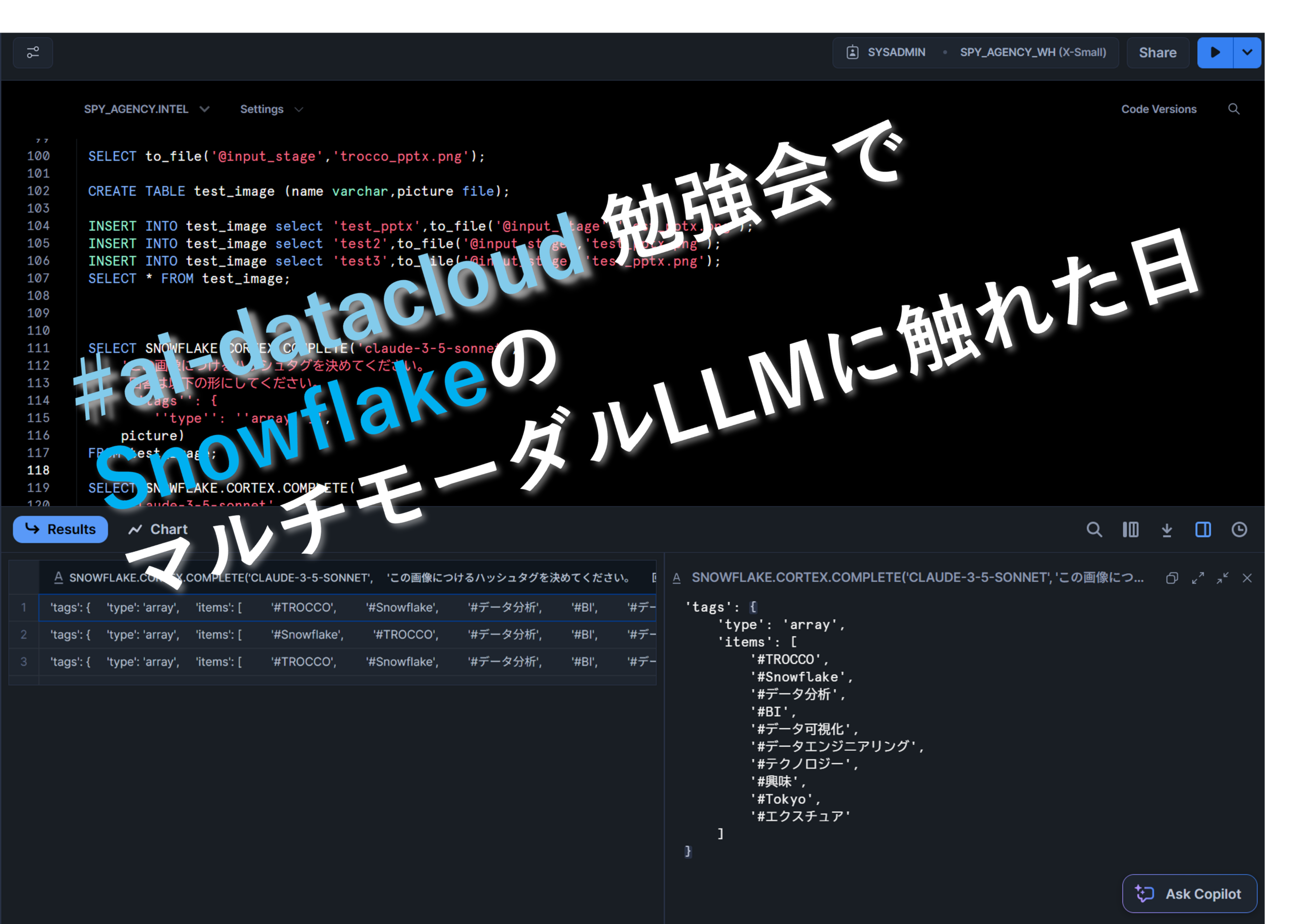 2025年4月16日、何回目かの #ai-datacloud 勉強会に参加しました。この勉強会は歩くリリースノートこと @toru_data さんが最近のSnowflakeのAI関連のリリースを見ながらその場で試すというスタイルで世界一ゆるくやっているであろうAI勉強会です。最近は世の中のAIの事例もたくさんでてきて一般人もAI想像力がついてきて、でもこの新機能だったらこんな使い方どうかな?と、まだ見ぬAIの使い道みたいなことをあれこれ語ることも多いような感じです。