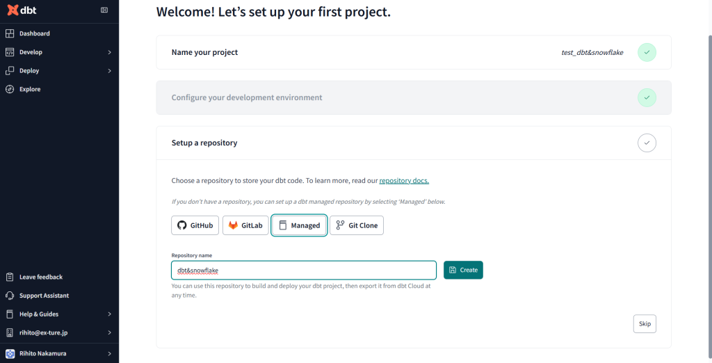 dbtCloudの登録とプロジェクトのセットアップ