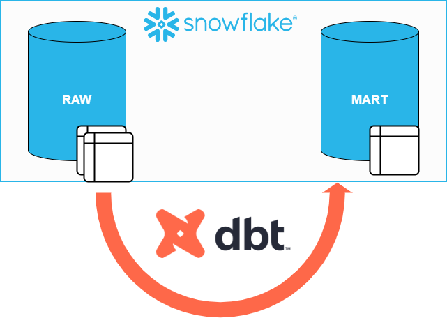 SnowflakeのRAWデータベースに入っているcustomers、ordersテーブルをdbtで参照して変形し、MARTデータベースにcustomersテーブルとして保存、同時にテストも行うジョブを作るのが今回の行うことです。