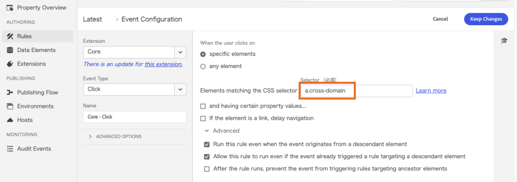specific elementsを選択し、任意のCSSセレクターを設定する