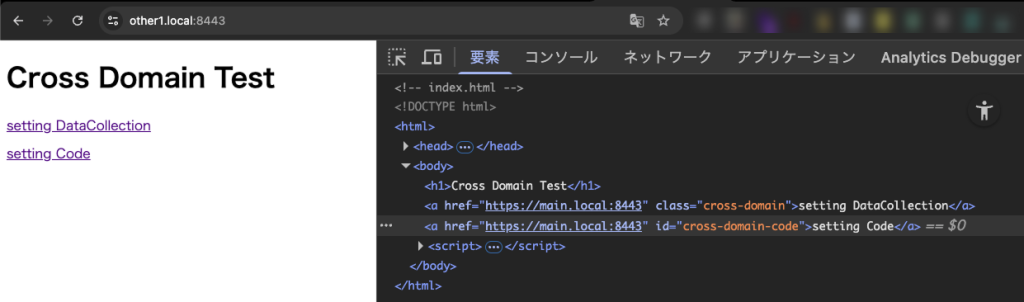 other1.localからmain.localへクロスドメイン対応用パラメタ付きで遷移します