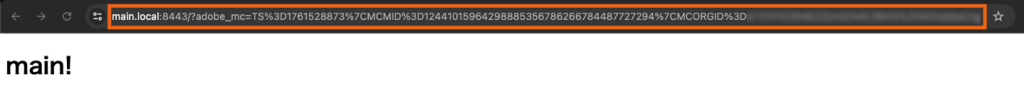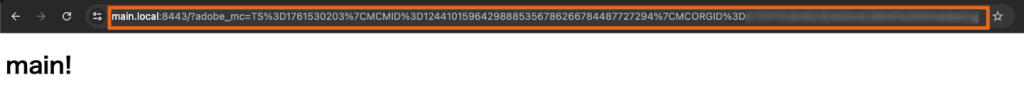 https://main.local:8443/?adobe_mc=TS%3D1761530203%7CMCMID%3D12441015964298885356786266784487727294%7CMCORGID%3D[企業ID]