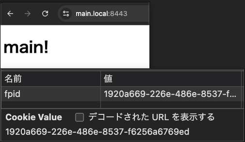 main.localのCookie情報を確認します