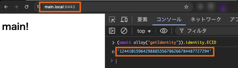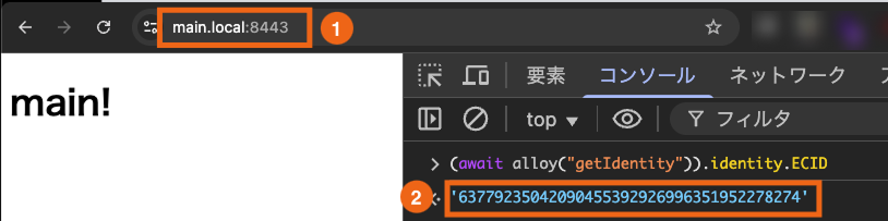 遷移先のmain.localのECIDを確認します