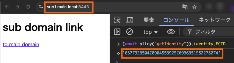 当記事で前述したother1.local → main.localへの遷移前後のECIDを確認します