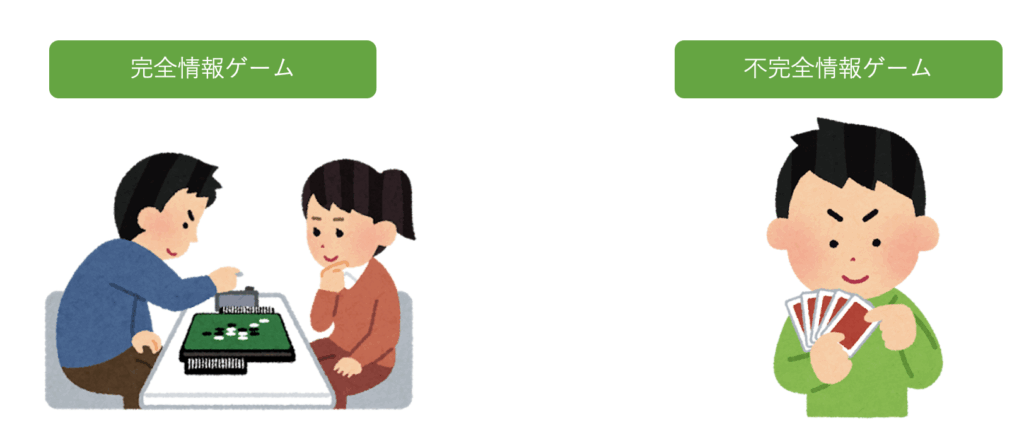 例: チェス・将棋・囲碁 - 不完全情報ゲーム: 相手の意図や戦略が部分的に不明であったり、相手の選択の理由が公開領域にないゲームです。