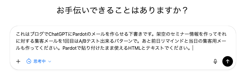 営業活動の中でも特に大変なのがウェビナーにおけるMAによるメール集客です。Account Engagementは生成AIが搭載されていると宣っていますが実際には存在しないに等しい状態でたまげたのは懐かしい話です(今はSTO以外それっぽい機能は利用してなくてどこにその機能があるかも忘れました)