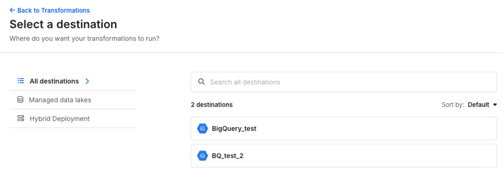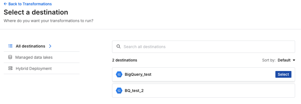 Add Transformationから、データ変換が実行されるdestinationを選択します。