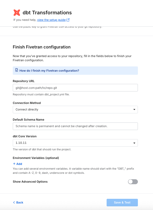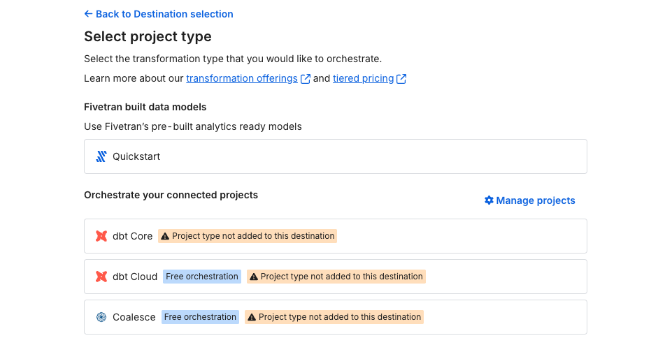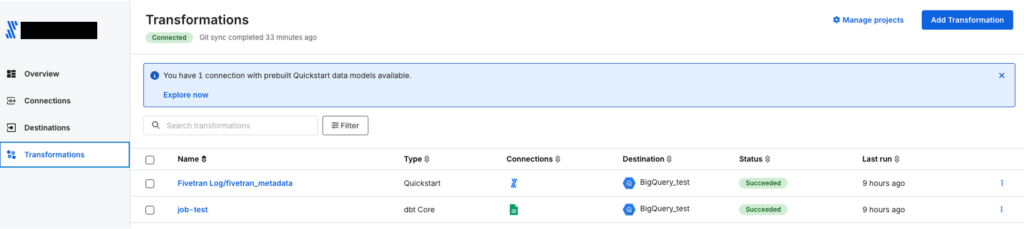 公式ドキュメント:https://fivetran.com/docs/transformations#exploreyouroptions