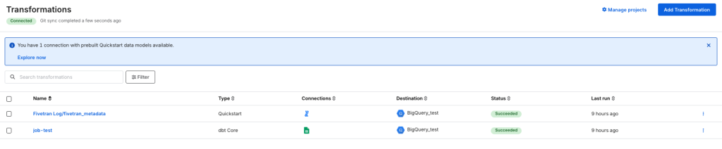 Transformationsを実装する方法はいくつかありますが、今回はdbt coreのプロジェクトをGithub経由で読み込んで実行します。