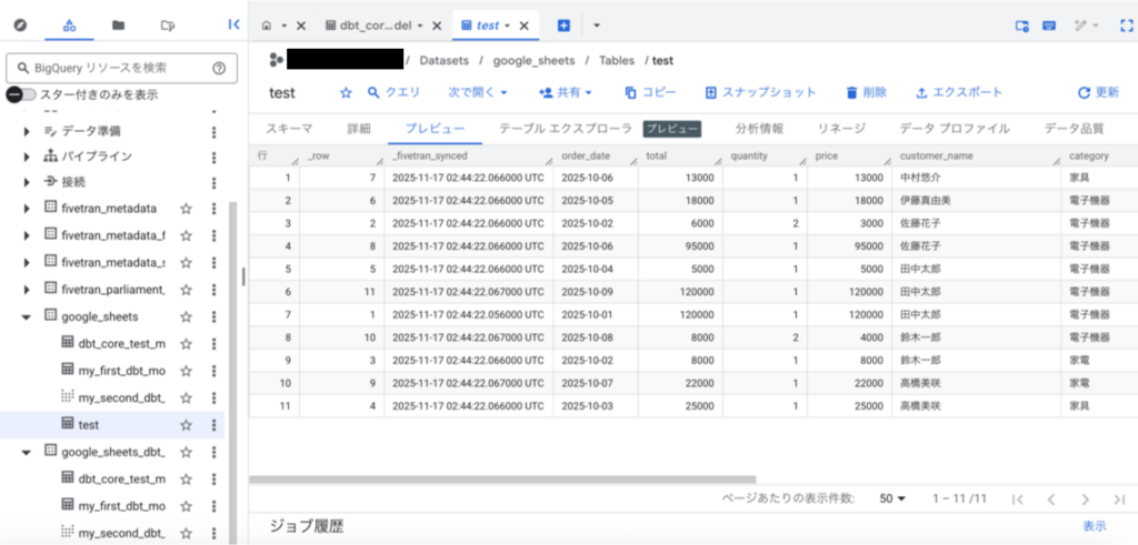 Fivetranでの設定が完了したので、BigQuery側で実行結果を確認してみしょう。