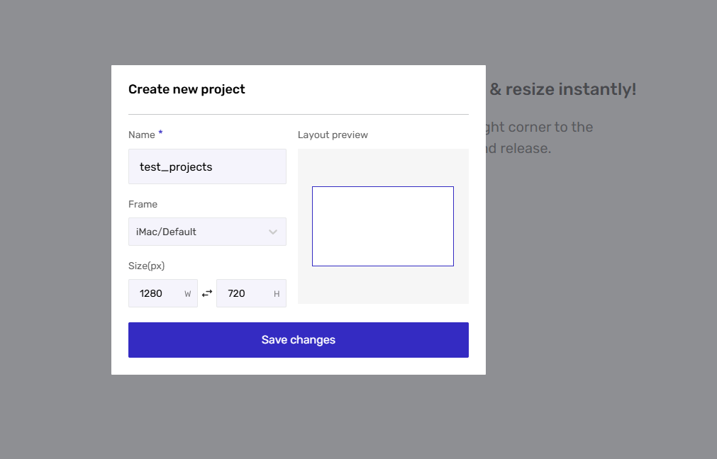 任意のプロジェクト名とテンプレートのサイズを選択します。