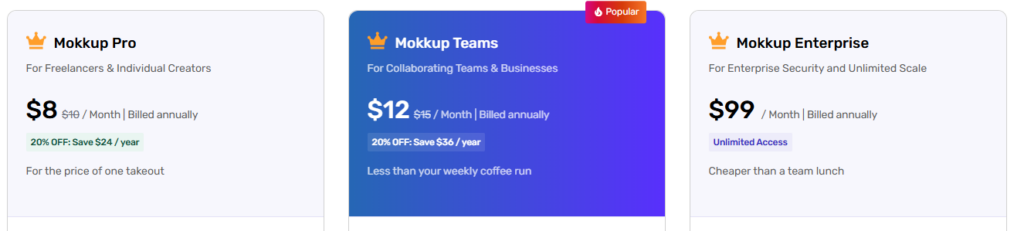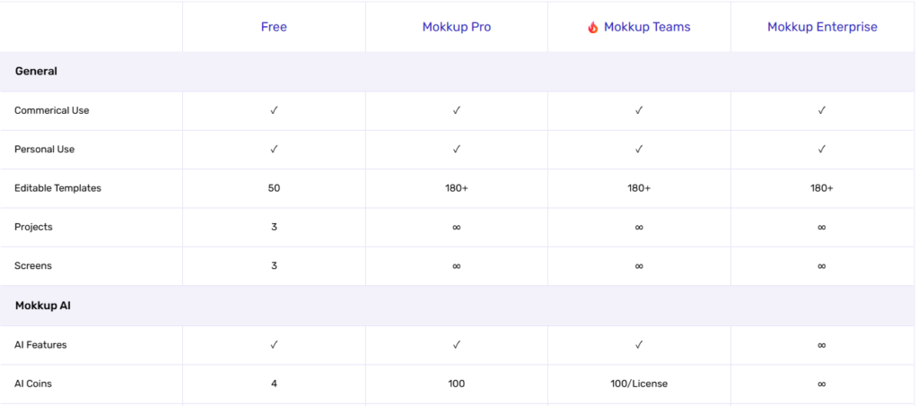MokkupにはFreeプランの他に3つのプランがあり、プラン毎にできることの範囲が異なります。