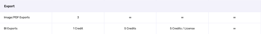 また、モックをBIにエクスポートする際にも クレジット を消費し、こちらもプランごとに毎月の付与量が決まっています。