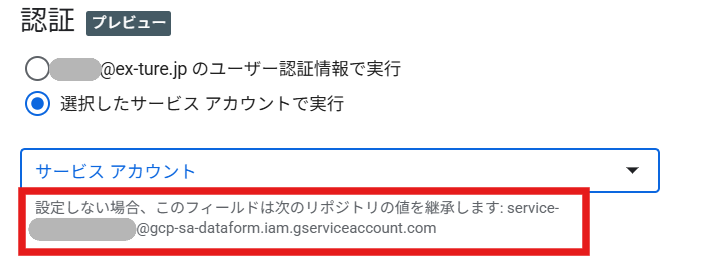 service-*********@gcp-sa-dataform.iam.gserviceaccount.comという Dataform のサービスエージェントが使用されます。