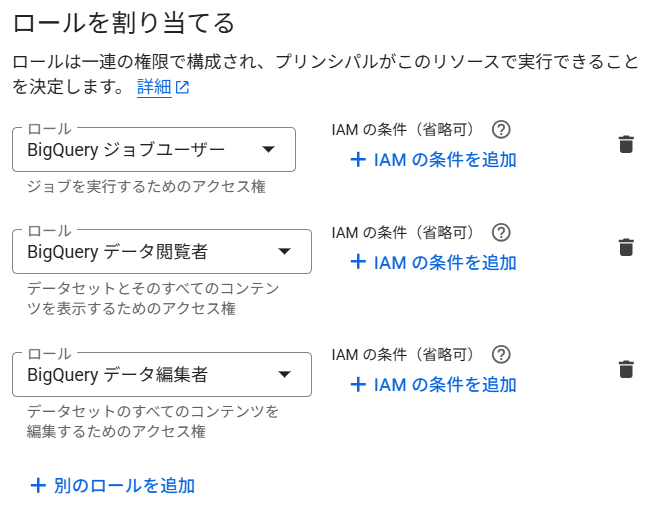 - ストレージオブジェクト閲覧者(DataformでGCSを見に行っている場合は必要)