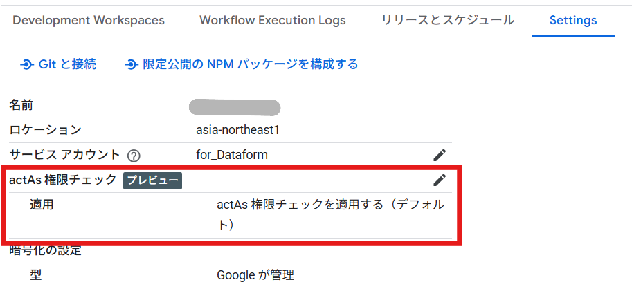 2026年1月19日ごろから新規のDataformリポジトリに対してactAs権限が強制適用されるようです。