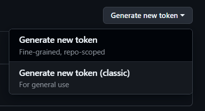Personal access tokens > Tokens (classic)を選択し、画面右上からGenerate new token (classic)を選択