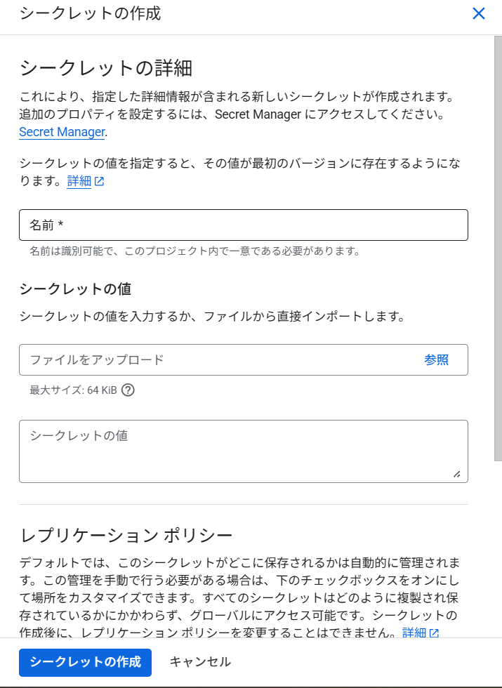 先ほどのPAT作成で作成されたシークレットを値に入力し、シークレットを作成