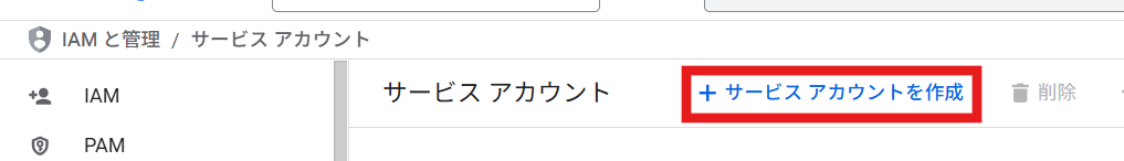 まず、GoogleCloudのコンソールに移動して、IAMと管理>サービスアカウントから + サービスアカウントを作成 を選択