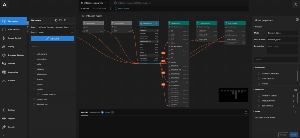 AtScaleはGUIでの操作に加えて、オープンソースのセマンティックモデリング言語(SML)も利用でき、git管理ができることもメリットですね。