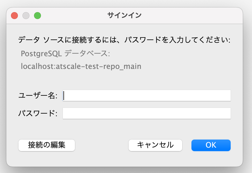 ユーザー名とパスワードを聞かれるので、AtScaleのユーザーとして設定したものを入力してください。