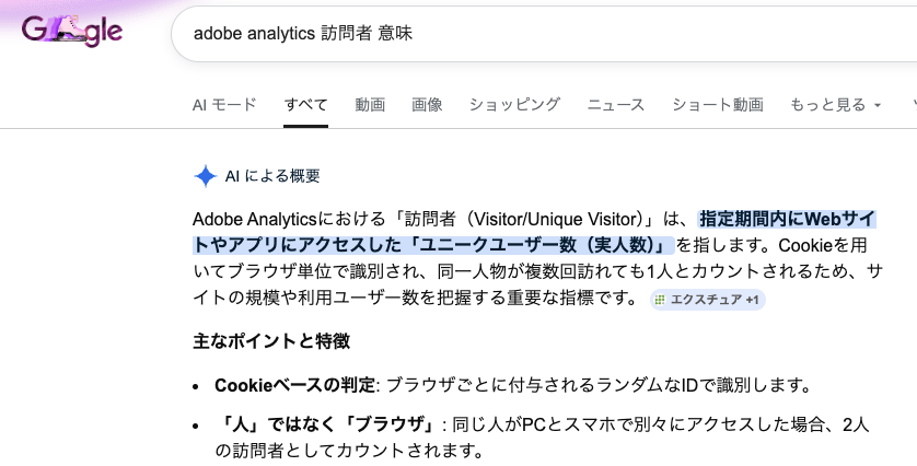 そもそもAIによる概要はそれを読めば事が足りるケースもあり、流入してくれないことが想定されますが生成AI経由のアクセスをAdobe Analyticsで見ていくにはこんな感じでした。先々を考えた場合にトラフィック増加がありえると言われている昨今なので、手っ取り早く確認できるのは嬉しいですね。ちょっとだけ🫠